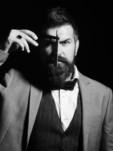 Detailed beard design and shaping service for full beards needing structure and definition.